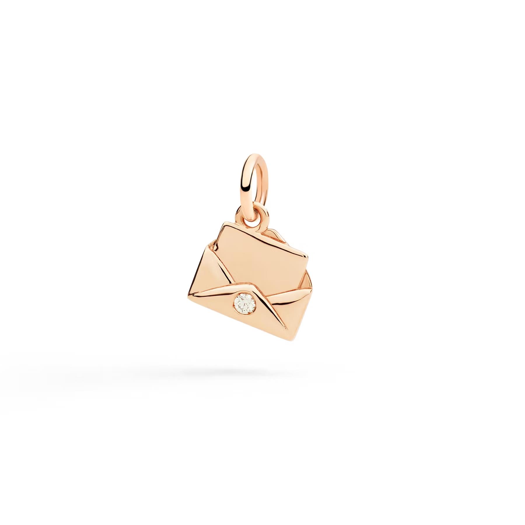 Anhänger Brief 9K Roségold mit einem weißen Diamant 0,02ct.
