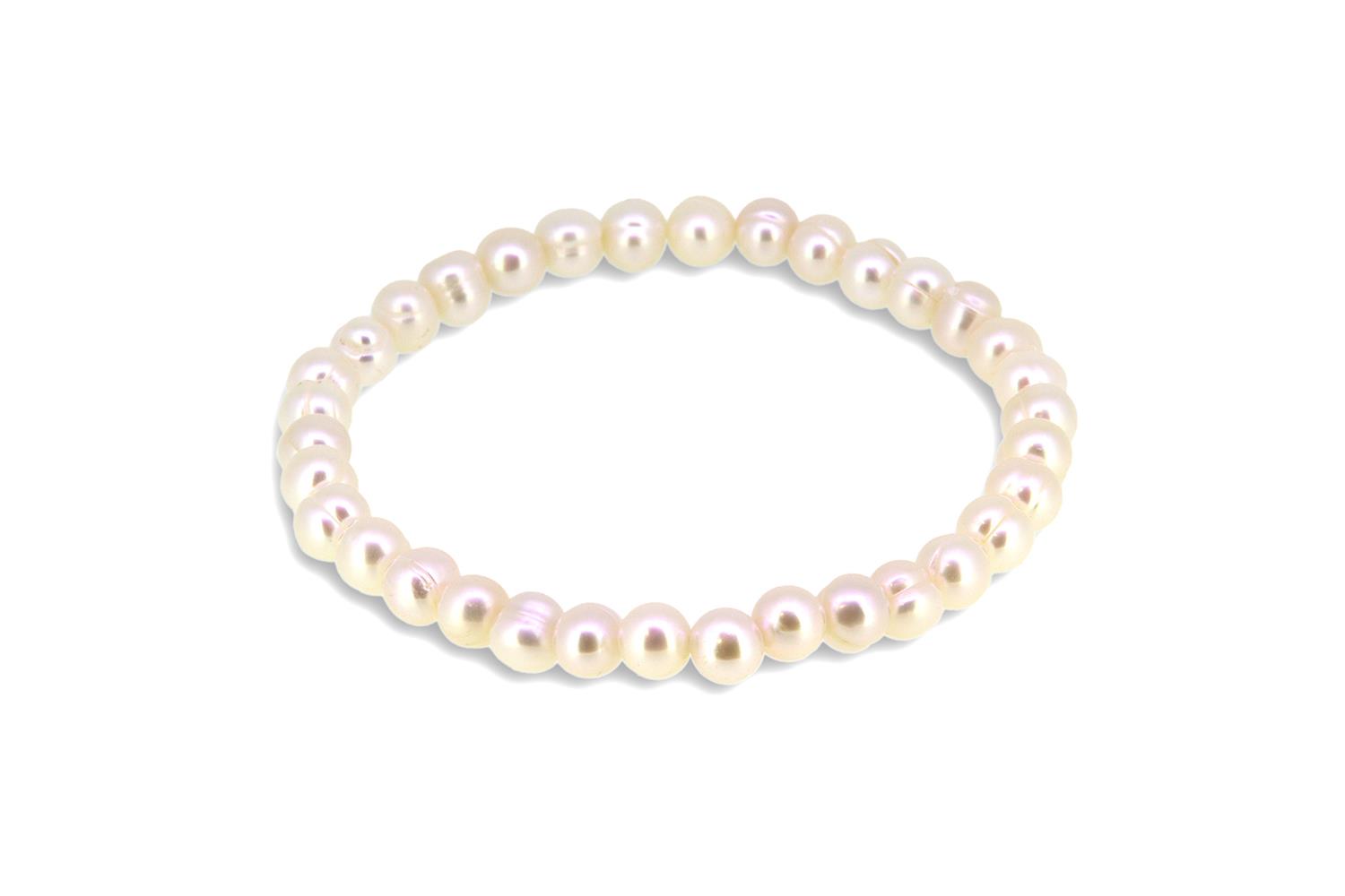 Armband Süßwasser Zuchtperlen weiss, oval, 5-6mm, auf elastischem Faden gefädelt. Größe 17cm.