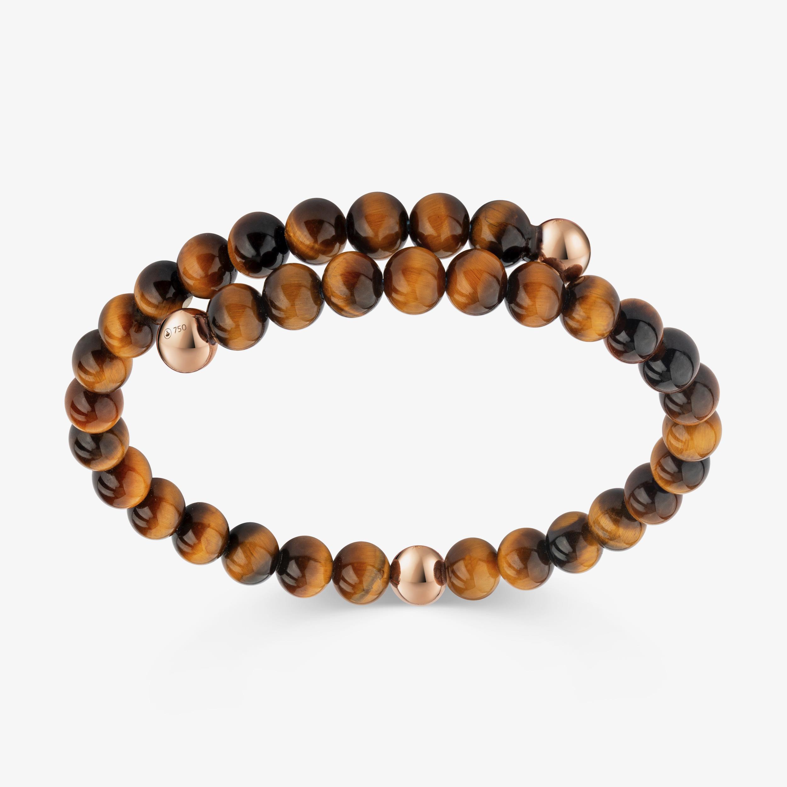Armreif Rondello flexibel mit 3 18K Roségold Kugeln 6mm und Tigerauge. Durch den flexiblen Titankern lässt sich der Armreif ganz bequem an- und ausziehen. Sofort verfügbar in Größe M.
