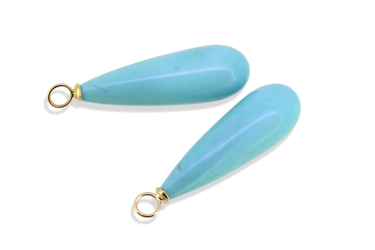 Einhänger für Creolen Arizona Türkis Pampeln glatt 27x9mm, mit 18K Goldösen. Preis ohne Creole.