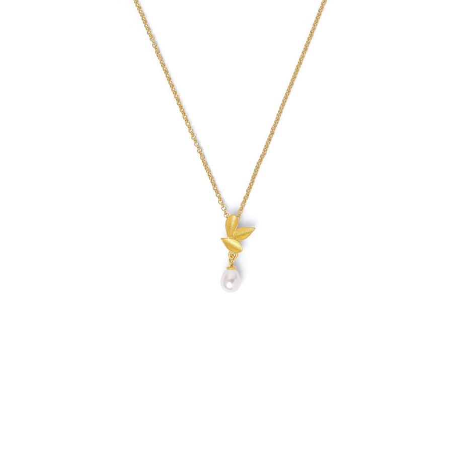 Modern minimalistisch und zugleich wunderbar zart und natürlich geformt: Der Anhänger Dricia ist ein stilvoller Hingucker. Die drei konkarv geformten Blättchen werden durch eine tropfenförmige Süßwasserperle schön abgerundet.