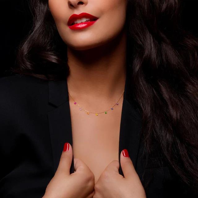 Kette Confetti Rainbow Saphire 18K Gelbgold