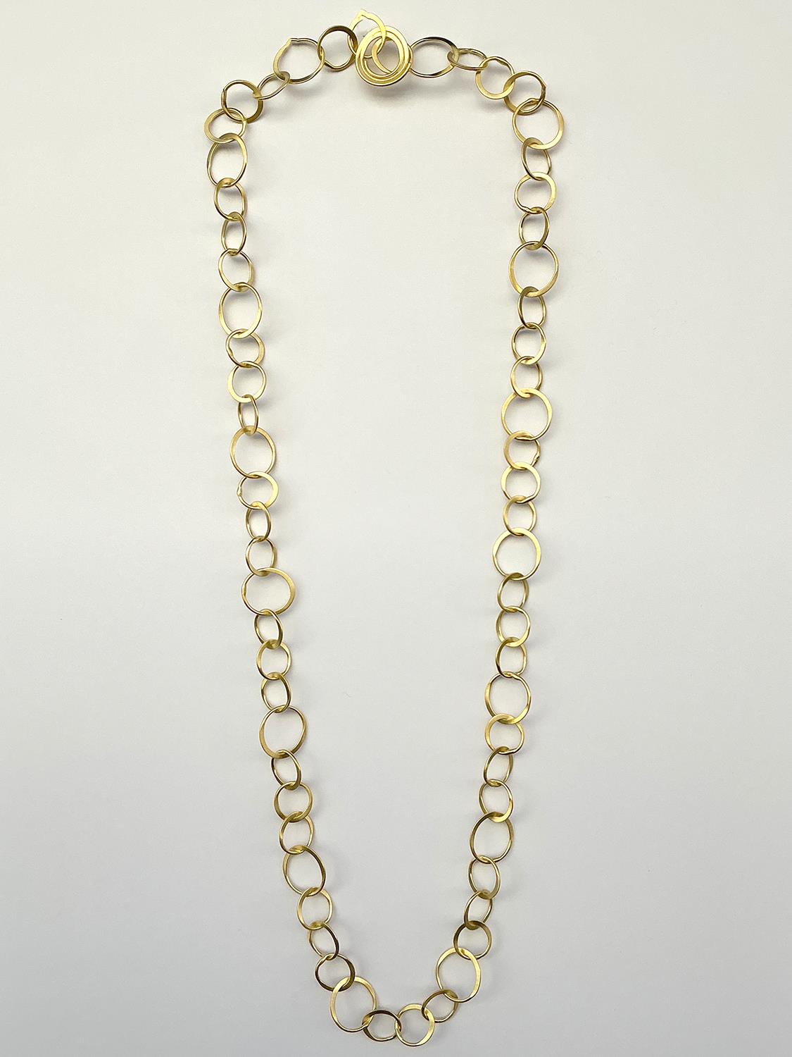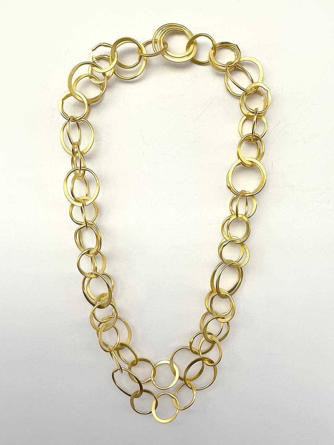 Der Schmuck von Antje Liebscher zeichnet sich durch seine Lebendigkeit und Individualität aus und schwingt sich – ob kurz oder lang – zu großer Form auf. Ein leises Klingen gehört zum Schmuck von Antje Liebscher dazu. Ihre langen Ketten mit den großen Ösen nehmen jede Bewegung auf und leben gemeinsam mit ihrer Trägerin. Sie sind optisches und akustisches Highlight.
