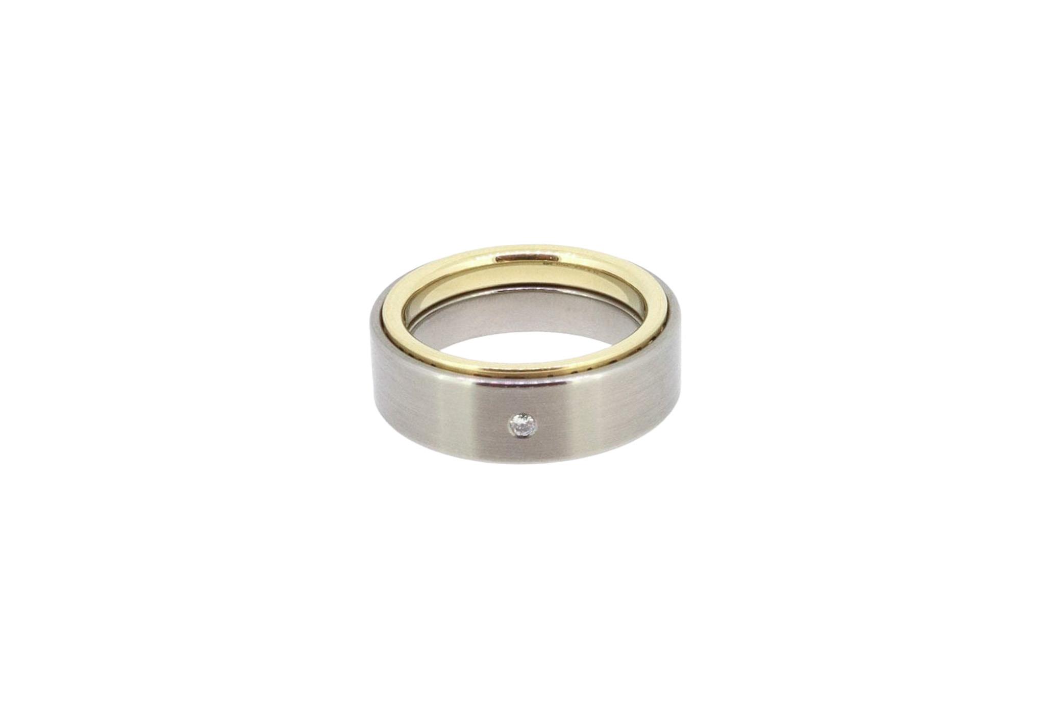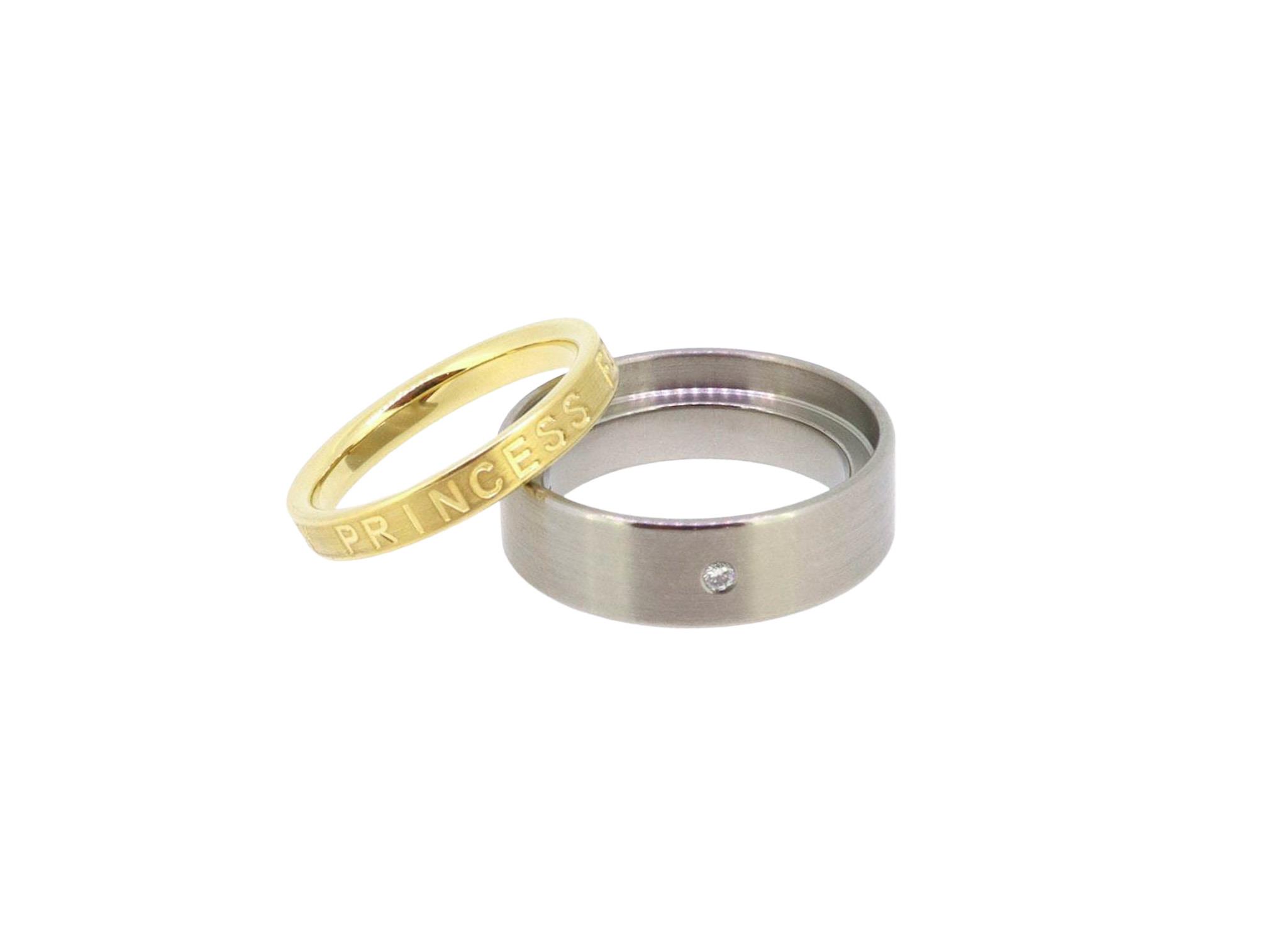 Ring Twinset aus 18K Gelbgold und Titan mit graviertem Innenring "YOU ARE MY PRINCESS FOREVER" und einem Brillanten 0,02ct.