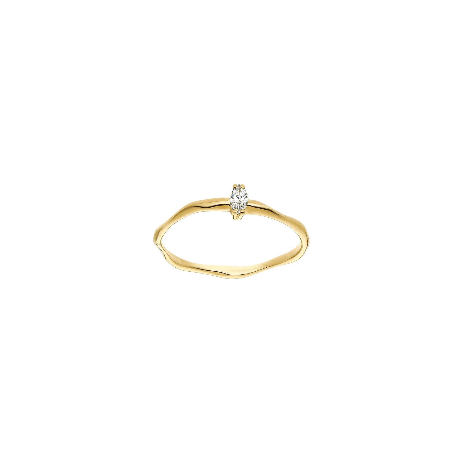 Ring 18K Gelbgold mit Diamant im Navette Schliff 0,07ct. Die fein gewellte Ringschiene hat eine Stärke von 1,5x1mm. In der Ringgröße 54 sofort verfügbar.