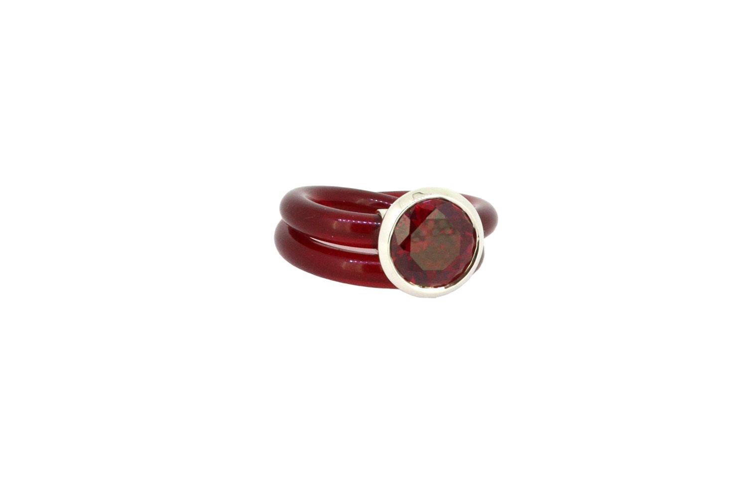 Ein ganzes Jahr lang experimentierte Monika Seitter mit allem, was sich um den Finger wickeln lässt. Dabei entdeckte sie einen Kunststoff, der in vielfarbiger Frische prächtig mit Farbsteinen wie Citrin, Topas oder Amethyst kombiniert werden kann. Die 1970 in Pforzheim geborene Diplomdesignerin ist seitdem ein gefeierter Star der kreativen Schmuckszene.