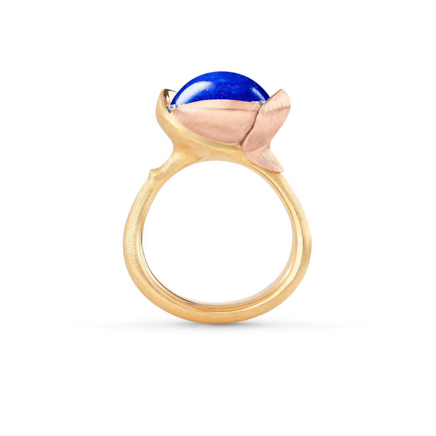 Ring Lotus no.0 Tiny Aquamarin 18K Gelbgold
