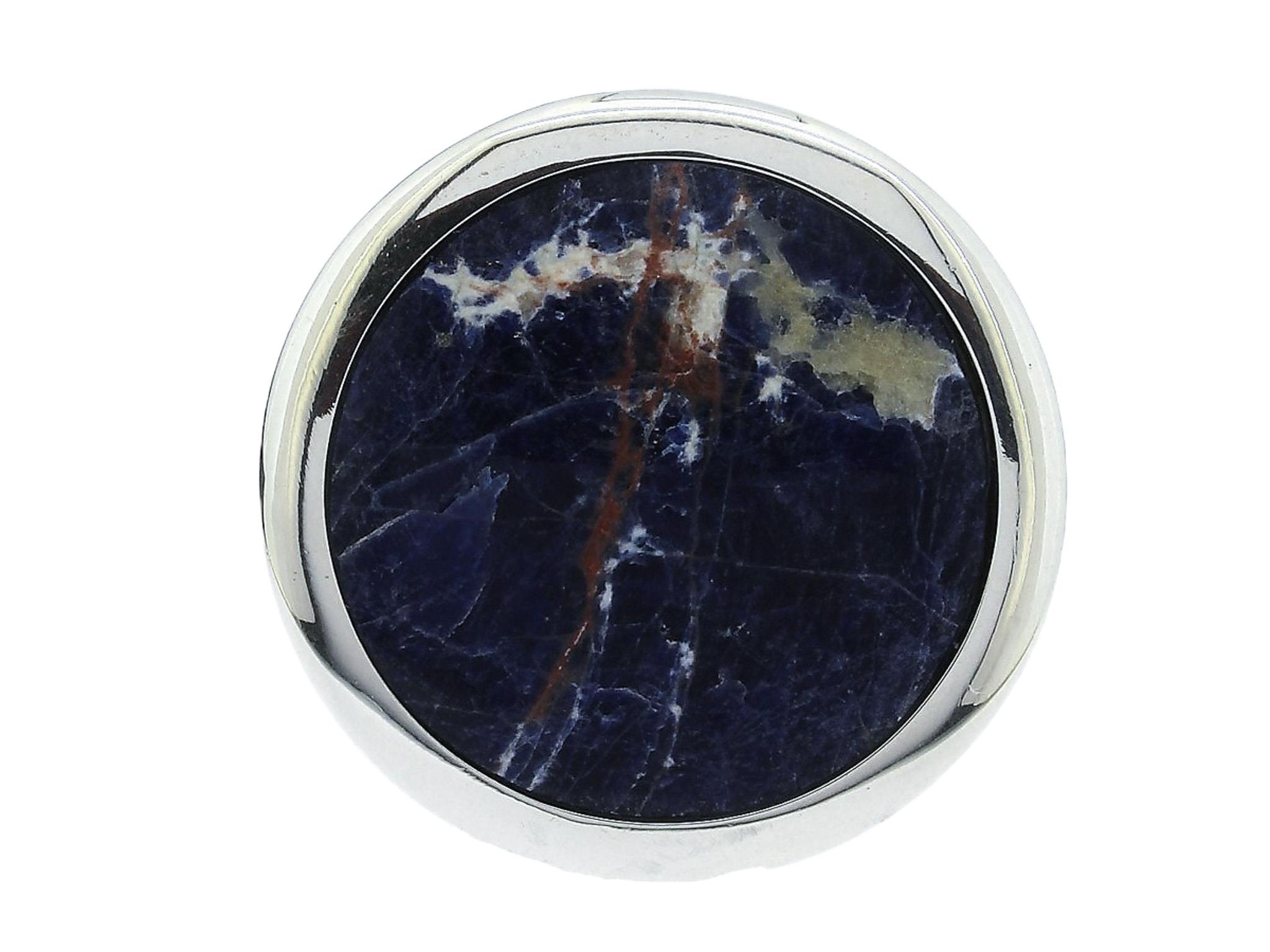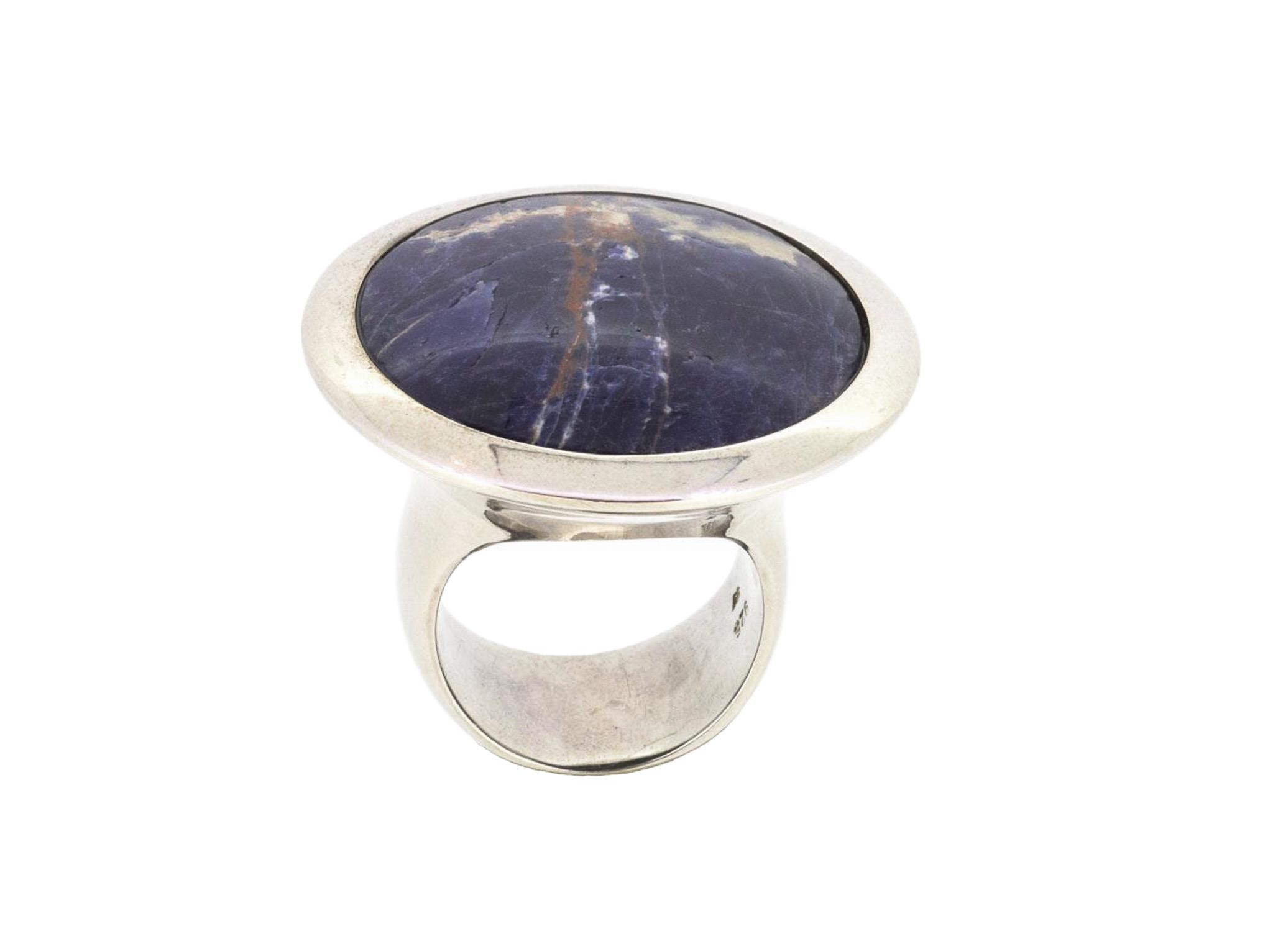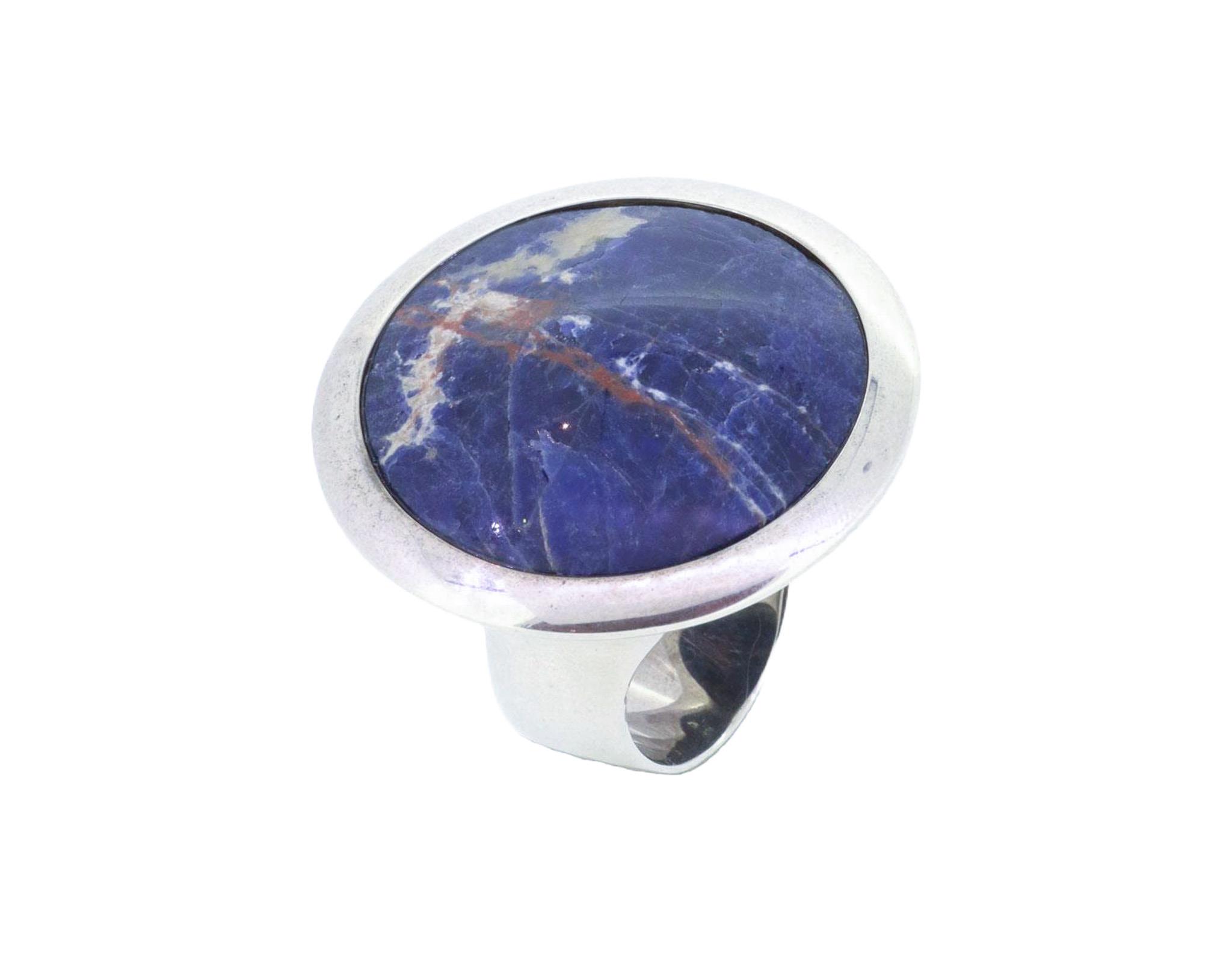 Handgearbeiteter Ring aus der Goldschmiede Fillner in Luzern. Sodalith gefasst in 925 Silber, poliert.