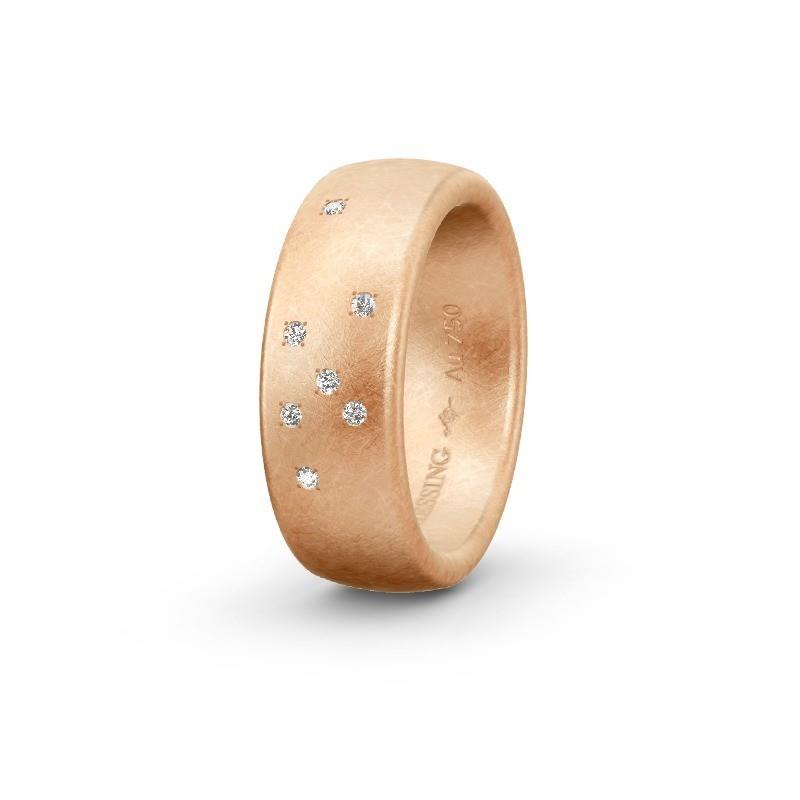 Trauring Oval 7,5mm 18K Rotgold vliesmatt Brillanten 0,07ct Sternenhimmel pointiert. In Größe 54 sofort lieferbar. Weitere Größen auf Anfrage. Gewicht 15,87 Gramm
