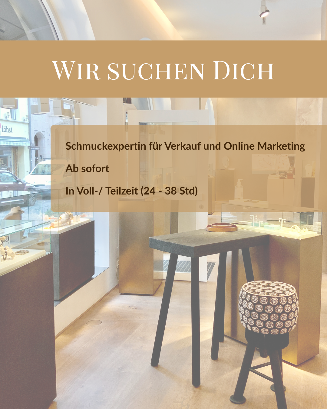 Wir suchen Dich ab sofort für die Stelle als Verkaufsberater/in (m/w/d) und Online Marketing Spezialist/in (m/w/d) für unsere Schmuckgalerie für mind. 24 Stunden / Woche.